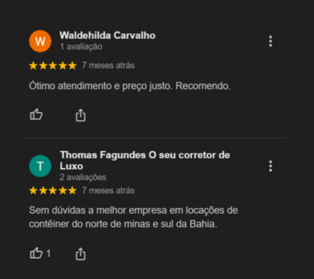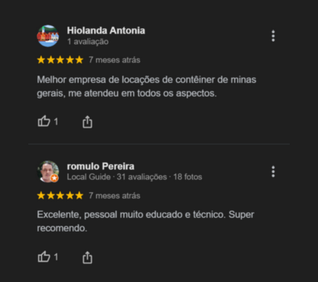 Confira nossos feedbacks e descubra como nossas soluções têm feito a diferença. Veja os depoimentos e confira a qualidade e eficiência que só a Mesquita Containers pode oferecer!